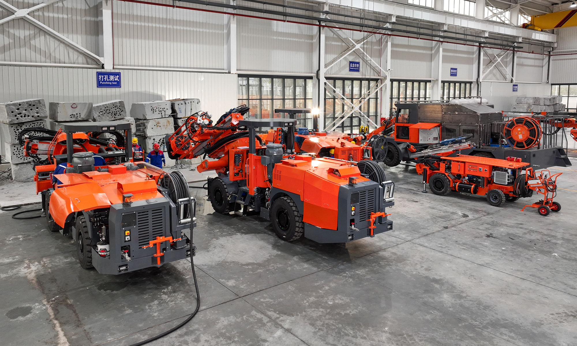 鑿巖臺(tái)車調(diào)試車間